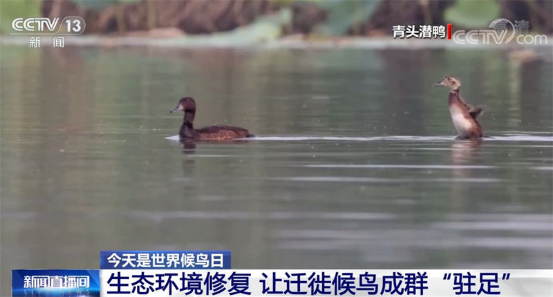 河北省林业和草原局野生动植物保护和湿地管理处二级调研员 陈振平: 今年首次监测到国家一级保护鸟类青头潜鸭繁育的幼鸟,我们也捕捉到了幼鸟的影像。野生动物种类的增加预示着我们生态环境的改善,白洋淀现在有鸟类237种,比5年前增加了31种。